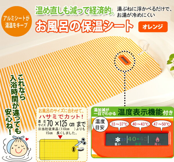 温度表示機能付!お風呂の保温シート オレンジ 価格: 980円 レビュー評価: 4.5 レビュー数:2 お風呂のお湯を冷たい外気に触れるのを防ぐ。 湯ぶねに浮かべるだけで、お湯が冷めにくくする。入浴する間隔があいても大丈夫。 お風呂のサイズに合わせて、ハサミでカット出来ます。 湯加減がわかる温度表示機能付き。 収納に便利なひも付き。 ■商品サイズ (約)125×70×厚み0.3cm ■重量 約178g ■原産国 台湾 ■材質・成分 本体:ポリエステル、ポリエチレン、アルミニウム 温度表示器:ABS樹脂 ■特記事項 耐熱温度:80度 当店の在庫状況によりお取り寄せになる場合があります。お取り寄せの際は発送までに1週間前後お時間をいただく場合がございますのでご了承ください。お急ぎの場合は事前にお問い Supported by 楽天ウェブサービス |